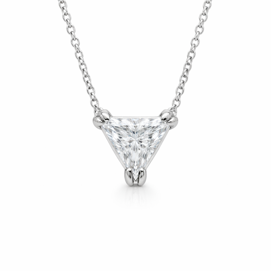 תליון עם שרשרת יהלום בליטוש משולש קלאסי "סוליטר", זמין החל מ-0.50 קראט ומעלה. התליון זהב 14K, וניתן לבחור בין זהב צהוב, לבן או רוז. משקלו כ-2 גרם, והוא מגיע עם תעודה גמולוגית בינלאומית.
