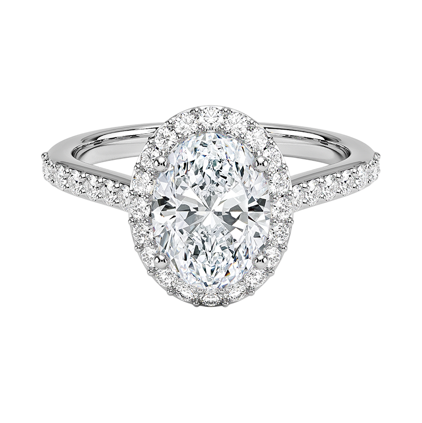 טבעת היילו עם פאבה משובצת יהלום בליטוש אובל, זמינה בזהב צהוב או לבן, החל מ-0.50 קראט.