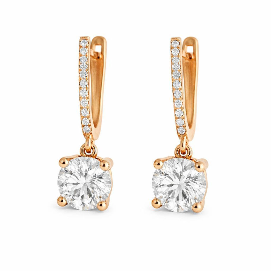 עגילים תלויים משובצים יהלומים החל מ1.00 קראט כל צד (2.00 קראט) סה"כ ומעלה, יהלומי צד בכל עגיל כ-0.10 קראט (0.20 קראט) סה"כ.